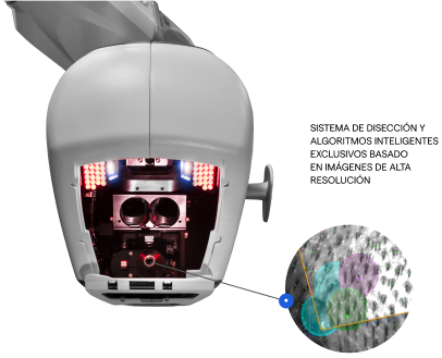 ARTAS® cuenta con un avanzado sistema de visión estereoscópica (3D) con varias cámaras que recolectan información del cuero cabelludo del paciente. A partir de los datos obtenidos, su sistema analiza y selecciona inteligentemente los injertos óptimos de la zona donante para el microtrasplante capilar. Al mismo tiempo, protege esta área y su cabello, manteniendo un aspecto natural y sin cicatriz visible.